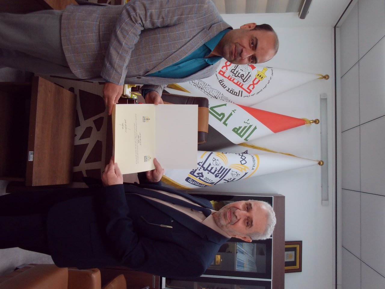 كرّم السيد عميد كلية العلوم الإسلامية في جامعة وارث الأنبياء (عليه السلام) الدكتور طلال فائق الكمالي، الدكتور ملهم سالم عيسى، تقديرًا لجهوده المبذولة في إنشاء المكتبة الإلكترونية الخاصة بالكلية وربطها بـ المكتبة المركزية التابعة للعتبة الحسينية المقدسة.