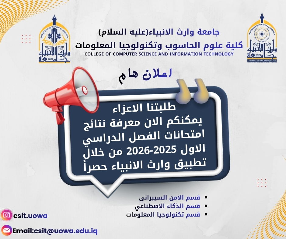 "وسط أجواء مفعمة بالتفاؤل والحرص على التفوق، دشن طلبة المرحلة الأولى في كلية العلوم بجامعة وارث الأنبياء (عليه السلام) امتحاناتهم النهائية للفصل الدراسي الأول، وتحديداً في تخصصي الفيزياء الطبية والأدلة الجنائية.