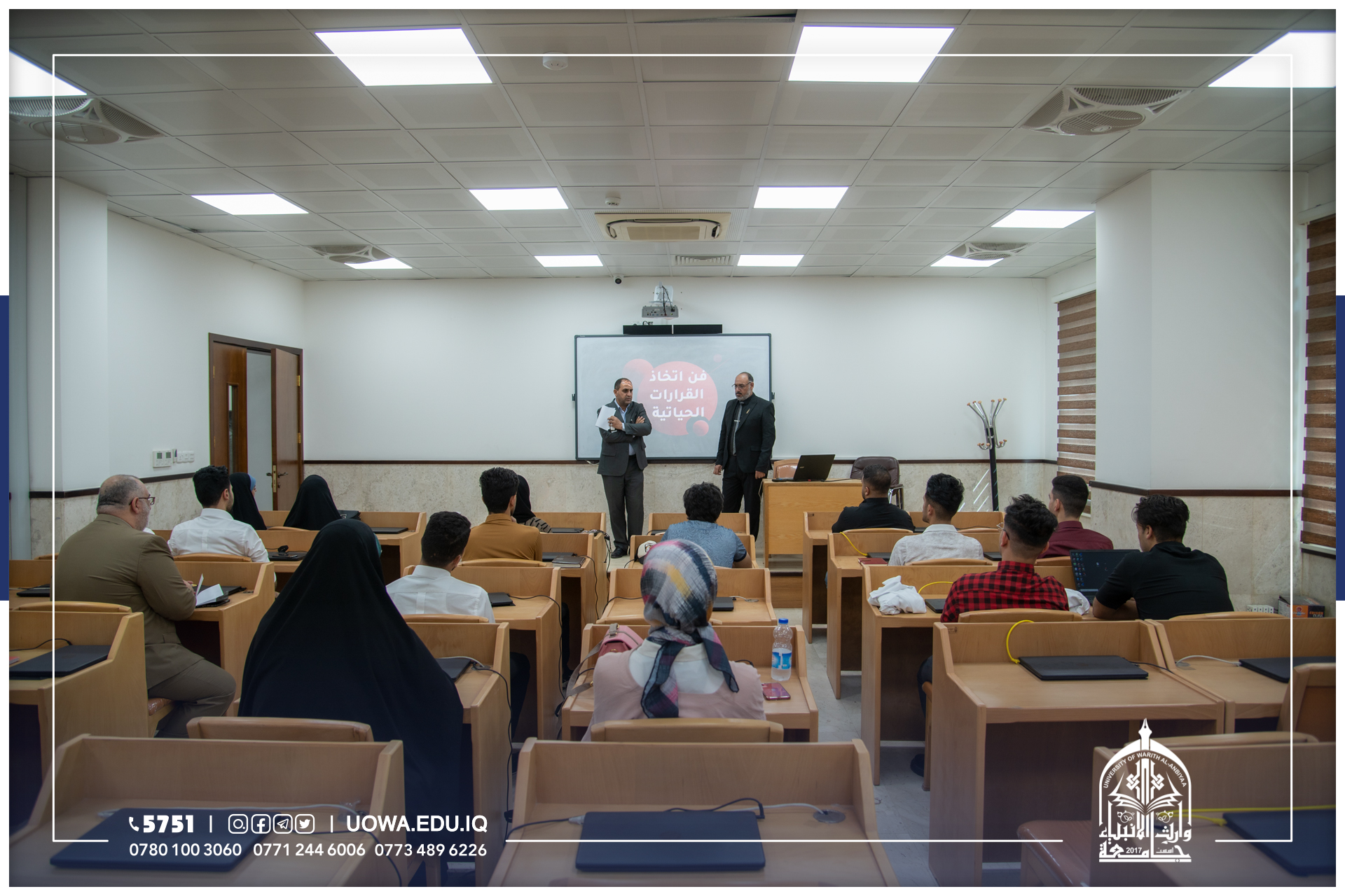 بدء أولى محاضرات البرنامج التدريبي الذي أطلقه مركز التعليم المستمر ضمن برنامج (طلبتنا قادة المجتمع) في جامعة وارث الأنبياء (عليه السلام) لطلبة الجامعة ،ابتداءً من يوم الأحد المصادف 9/10/2022، ولمدة تسعة ايام.