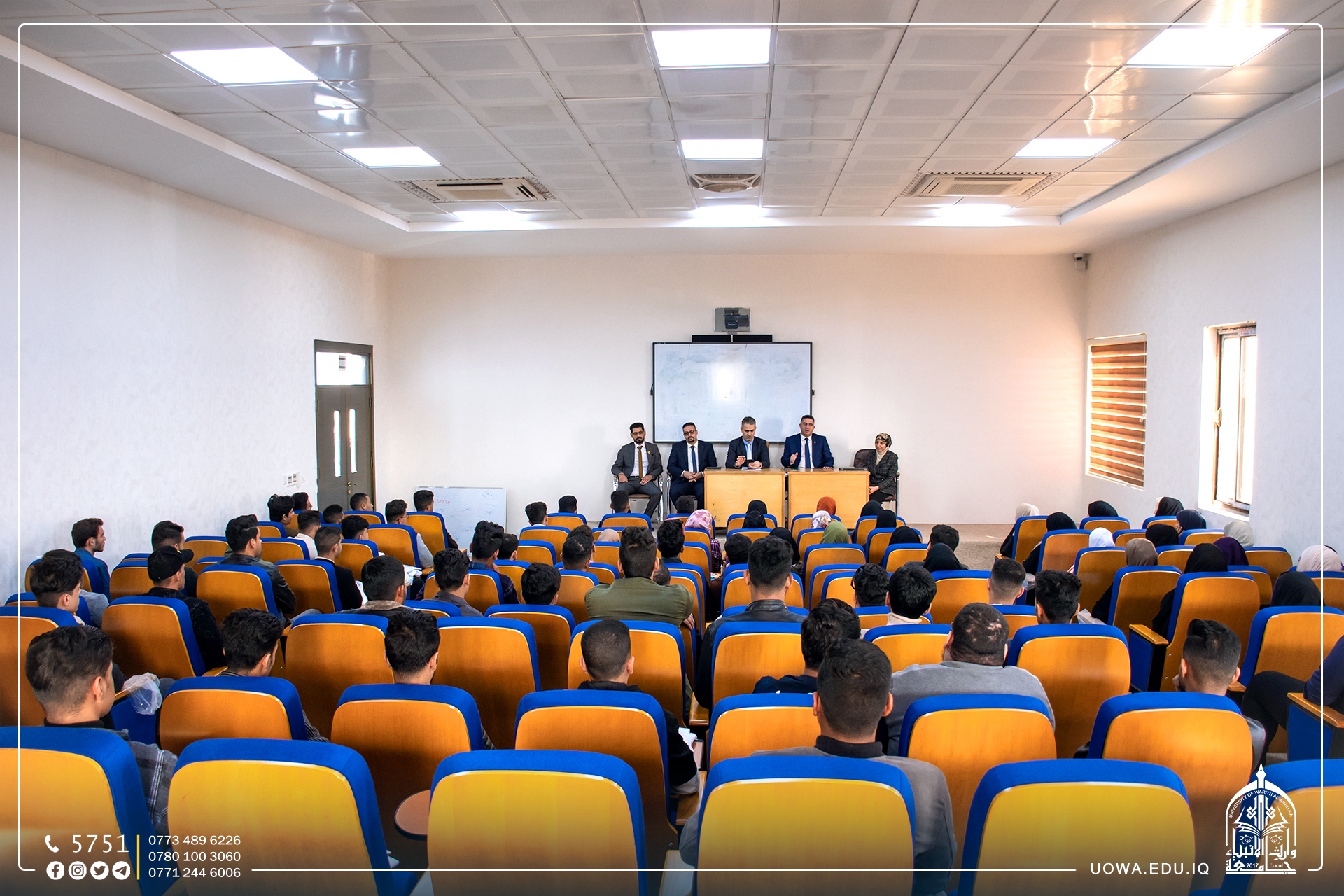 إذ القى السيد عميد الكلية كلمةً رحب فيها بالطلبة الجدد متمنياً لهم عاماً مكللاً بالنجاح والتفوق ومؤكداً على ضرورة اهتمام الطلبة بالجانب العلمي والأخلاقي.