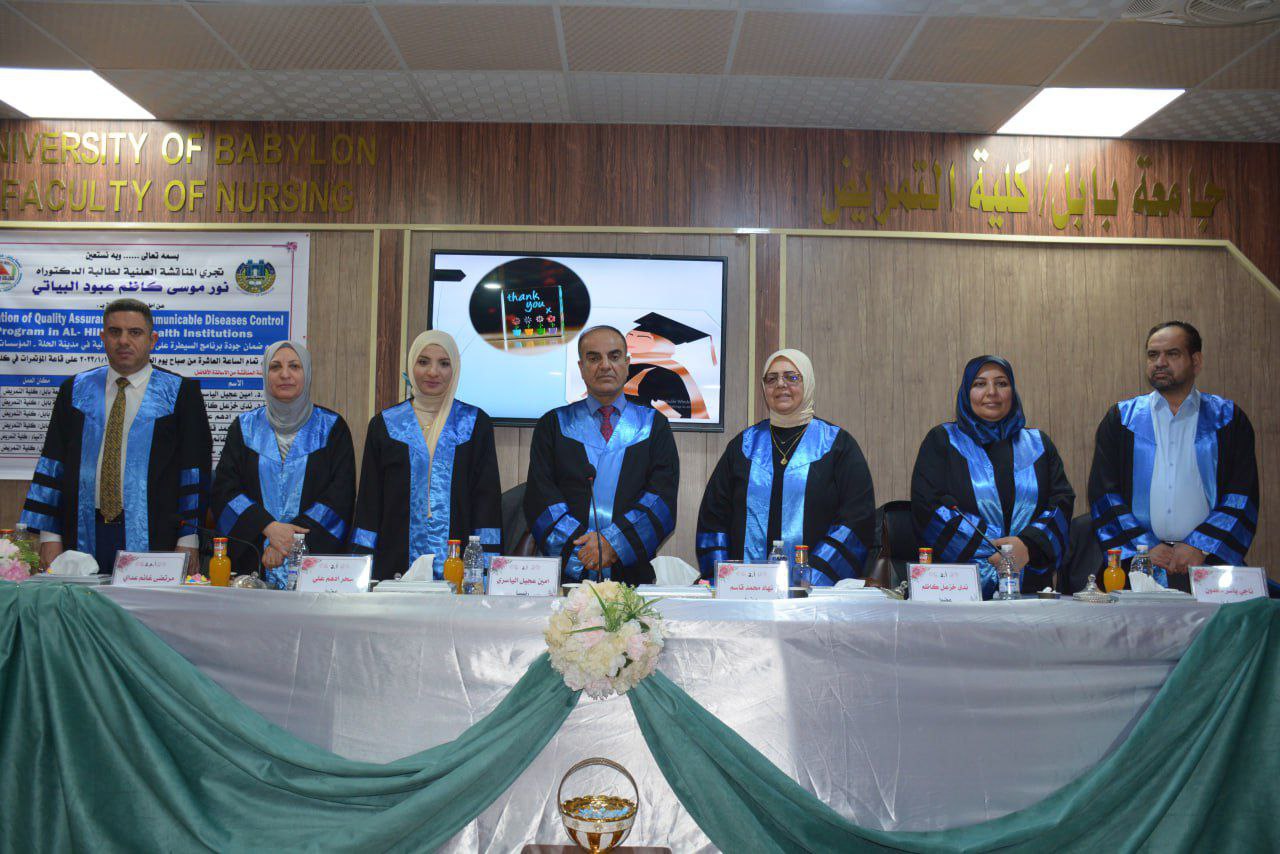 اختير الدكتور مرتضى غانم عداي الجبوري عميد كلية التمريض، في جامعة وارث الانبياء (عليه السلام) عضوا لمناقشة أطروحة الدكتوراه لاحد طلبة الدراسات العليا في جامعة بابل/ كلية التمريض.