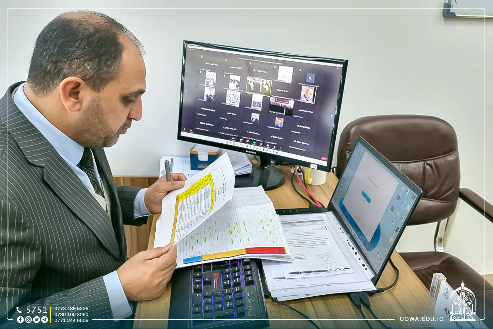 اطلع فريق "جهاز الاشراف والتقويم العلمي" الالكتروني على سير امتحانات الفصل الاول في كليات واقسام الجامعة، اذ التقى الوفد( عبر منصة الزووم) بالسيد المساعد العلمي الاستاذ الدكتور عباس الدعمي، والسيد مدير مركز التعليم المستمر الدكتور حيدر الغانمي الذي تحدث قائلاً: بمشاركة 1290 طالب وطالبة في امتحانات هذا اليوم تفقد الفريق الوزاري القاعات الامتحانية، واللجان الامتحانية، وابدى ارتياحه واعجابه الكبير لما وفرته الجامعة من امكانيات علمية لانجاح الامتحانات الفصلية.
