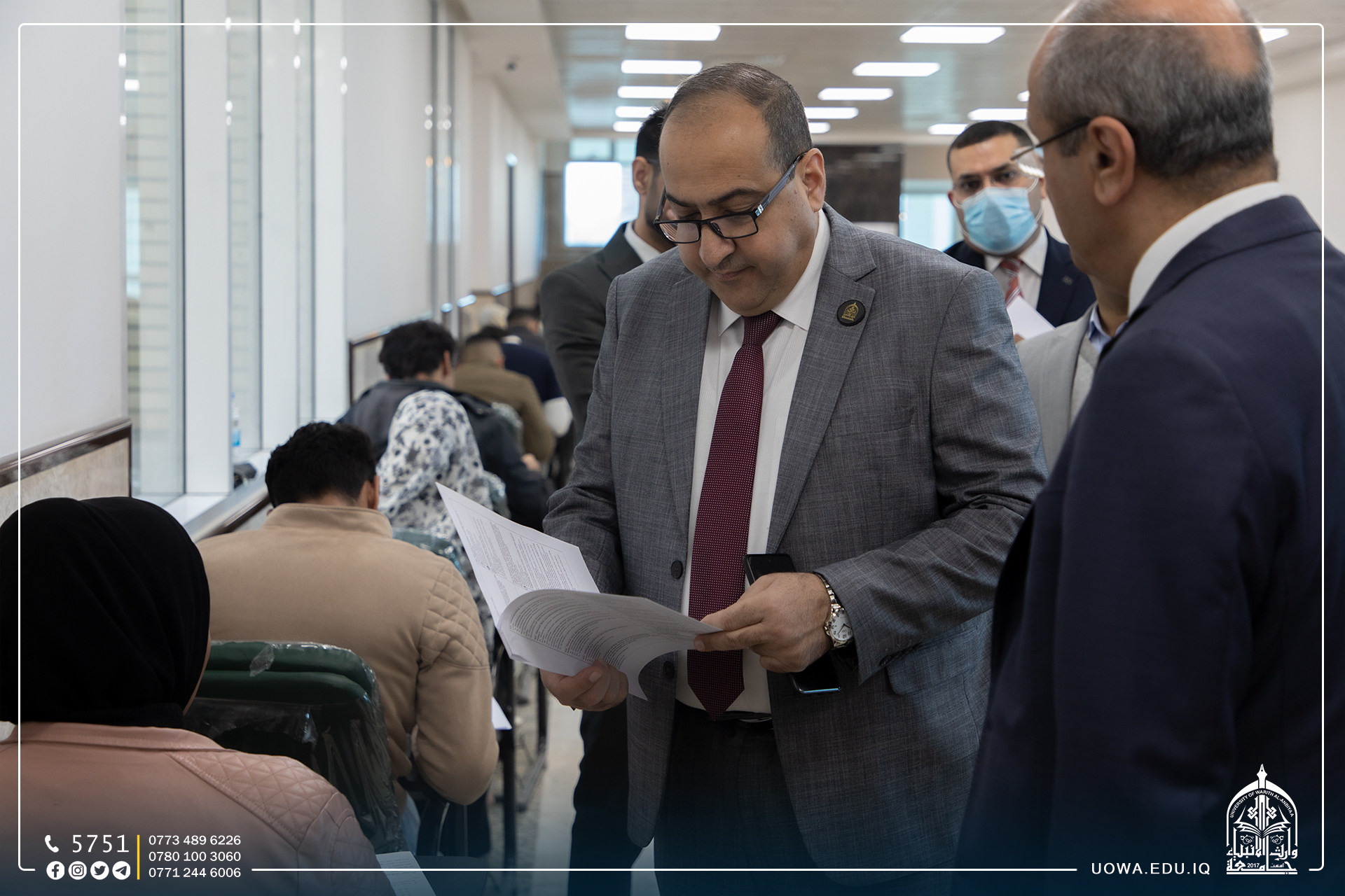 جولة تفقدية للسيد رئيس الجامعة الاستاذ الدكتور ابراهيم الحياوي برفقة السيد مساعد رئيس الجامعة للشؤون العلمية وعدد من السادة عمداء الكليات ورؤساء الاقسام للاطلاع على سير الامتحانات الفصلية.