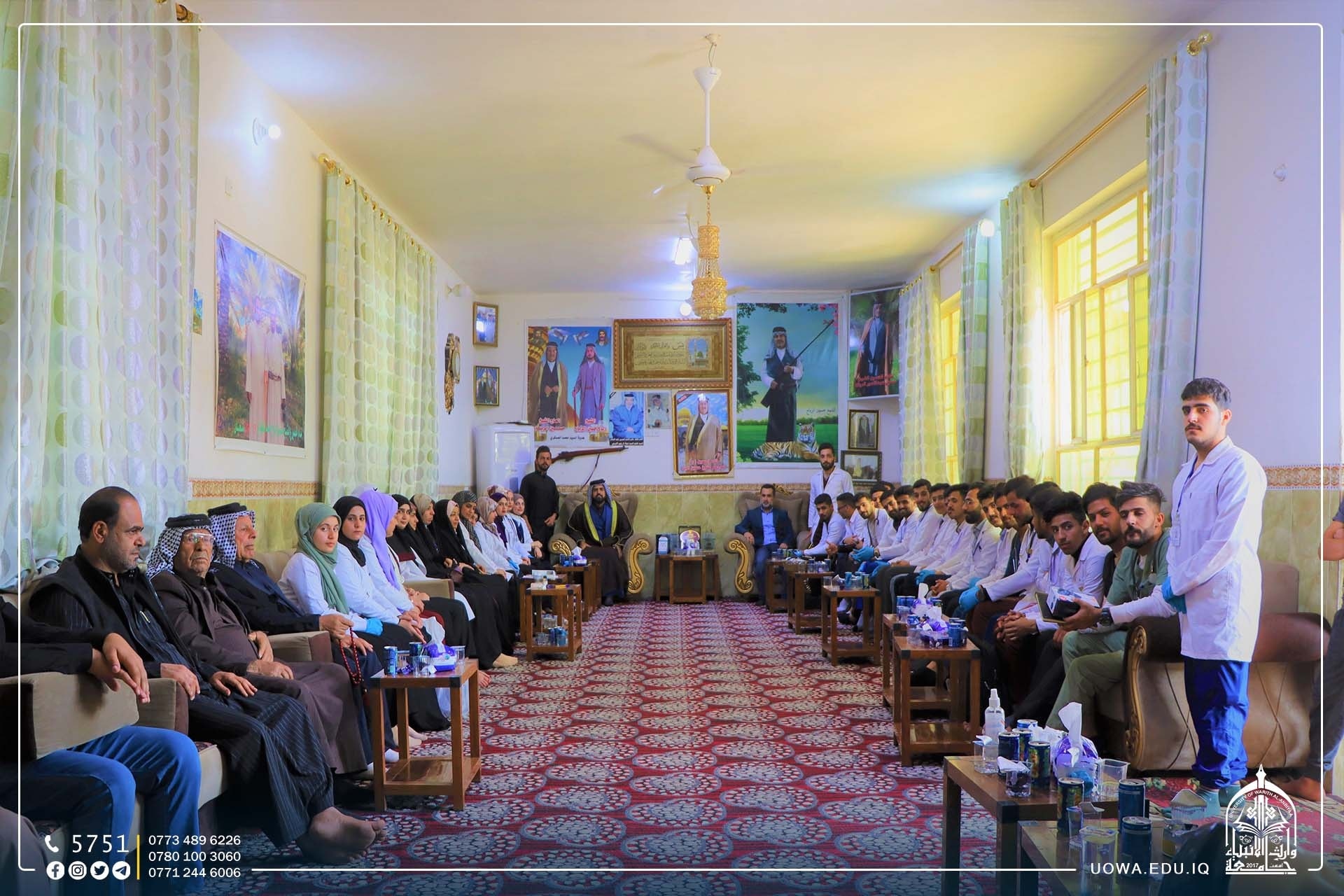 ضمن مبادرة "بركات الانوار المحمدية" التي اطلقتها هيئة الصحة والتعليم الجامعي في العتبة الحسينية المقدسة بمناسبة الولادات الشعبانية المباركة، اقامت كلية الطب بالتعاون مع كلية التمريض في جامعة وارث الانبياء(عليه السلام)، جولة ميدانية للقرى في اطراف محافظة كربلاء المقدسة بإشراف عمادة كلية الطب لتقديم الدعم الطبي لساكني هذه القرى و الاستشارات الطبية لهم.
