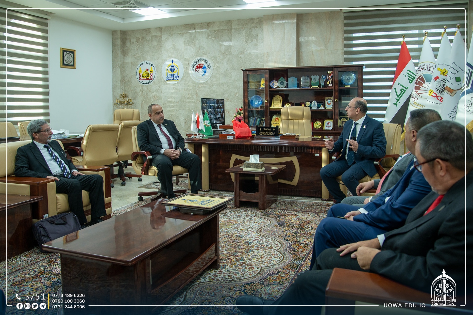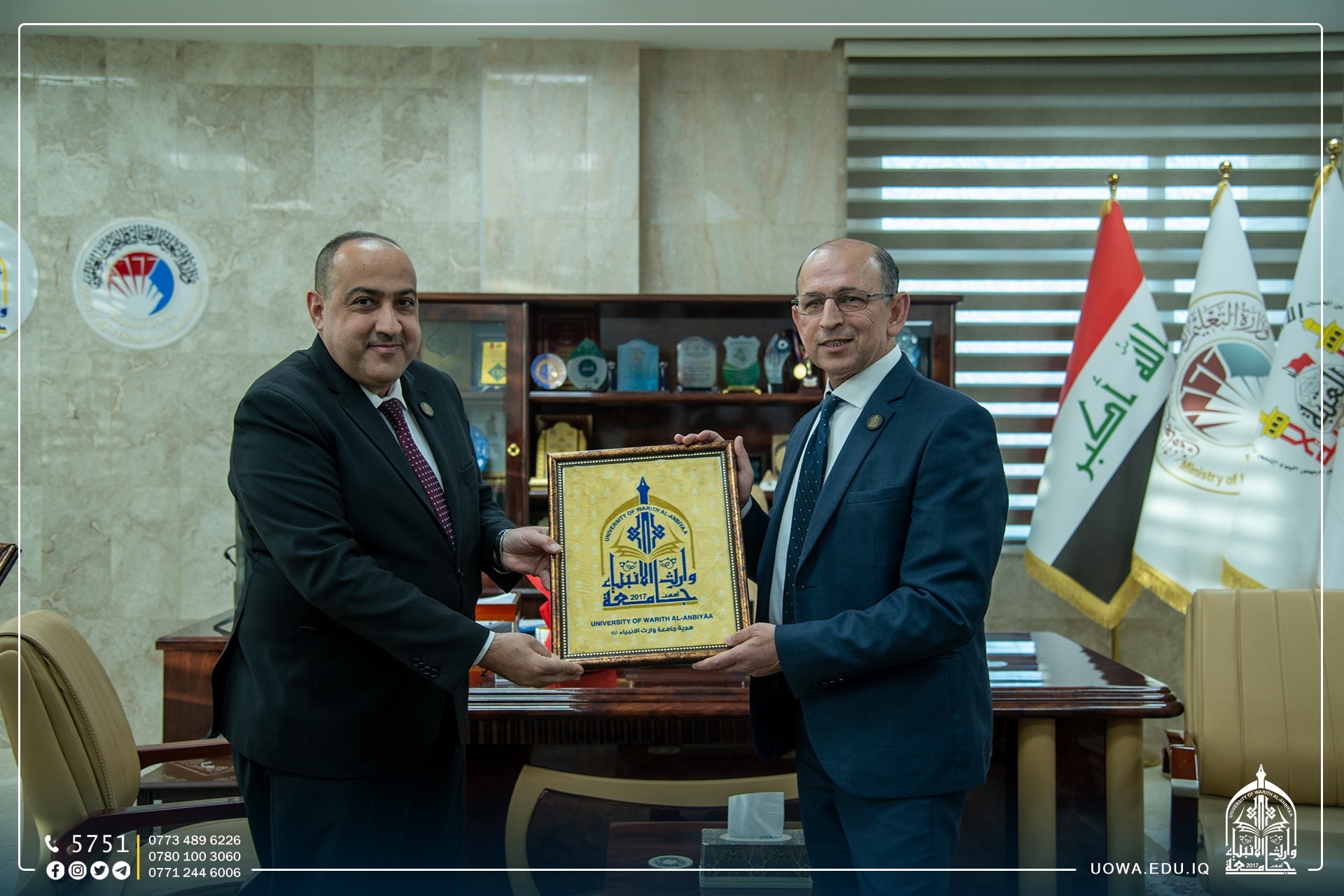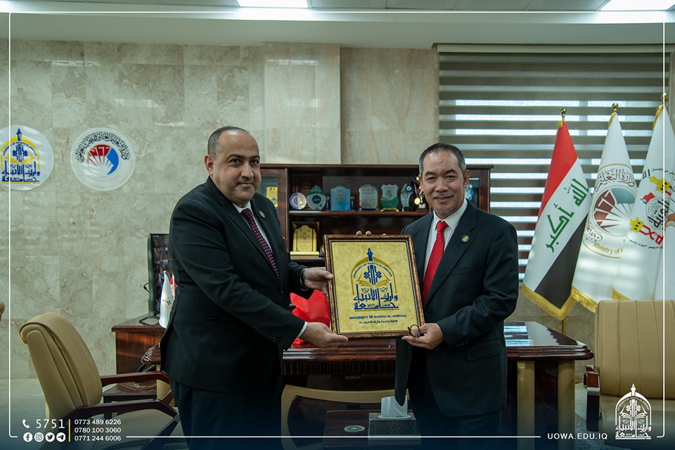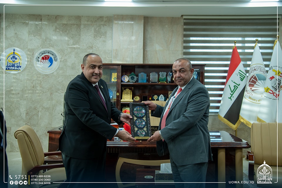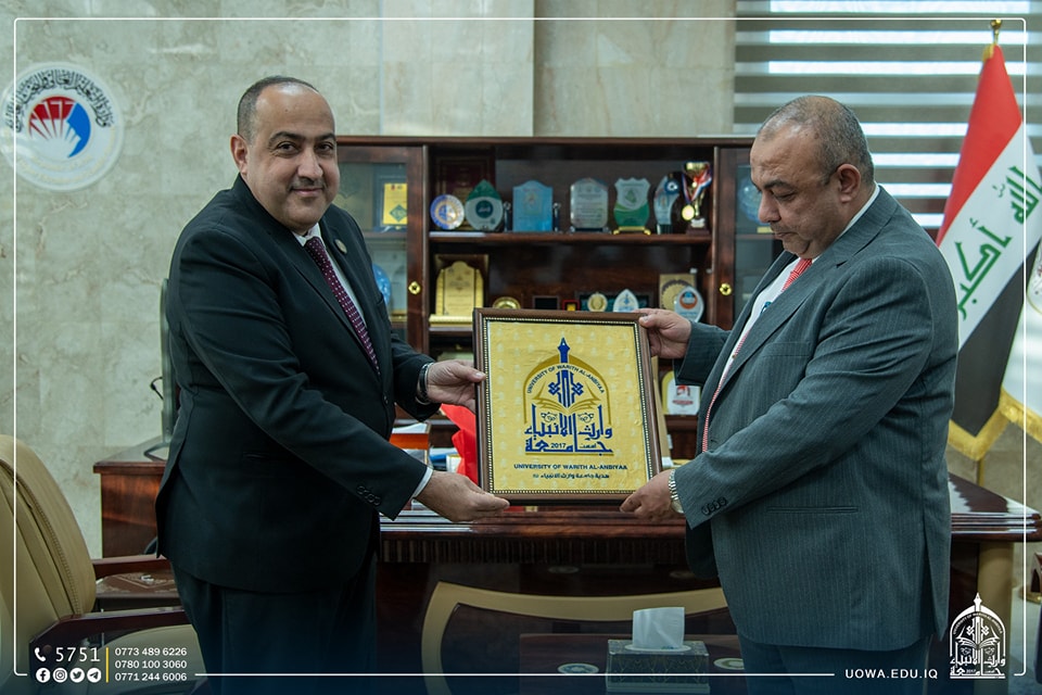 وفي نهاية الزيارة قدم السيد رئيس الجامعة الاستاذ الدكتور ابراهيم الحياوي هدايا الشكر والتقدير لاعضاء الوفد.