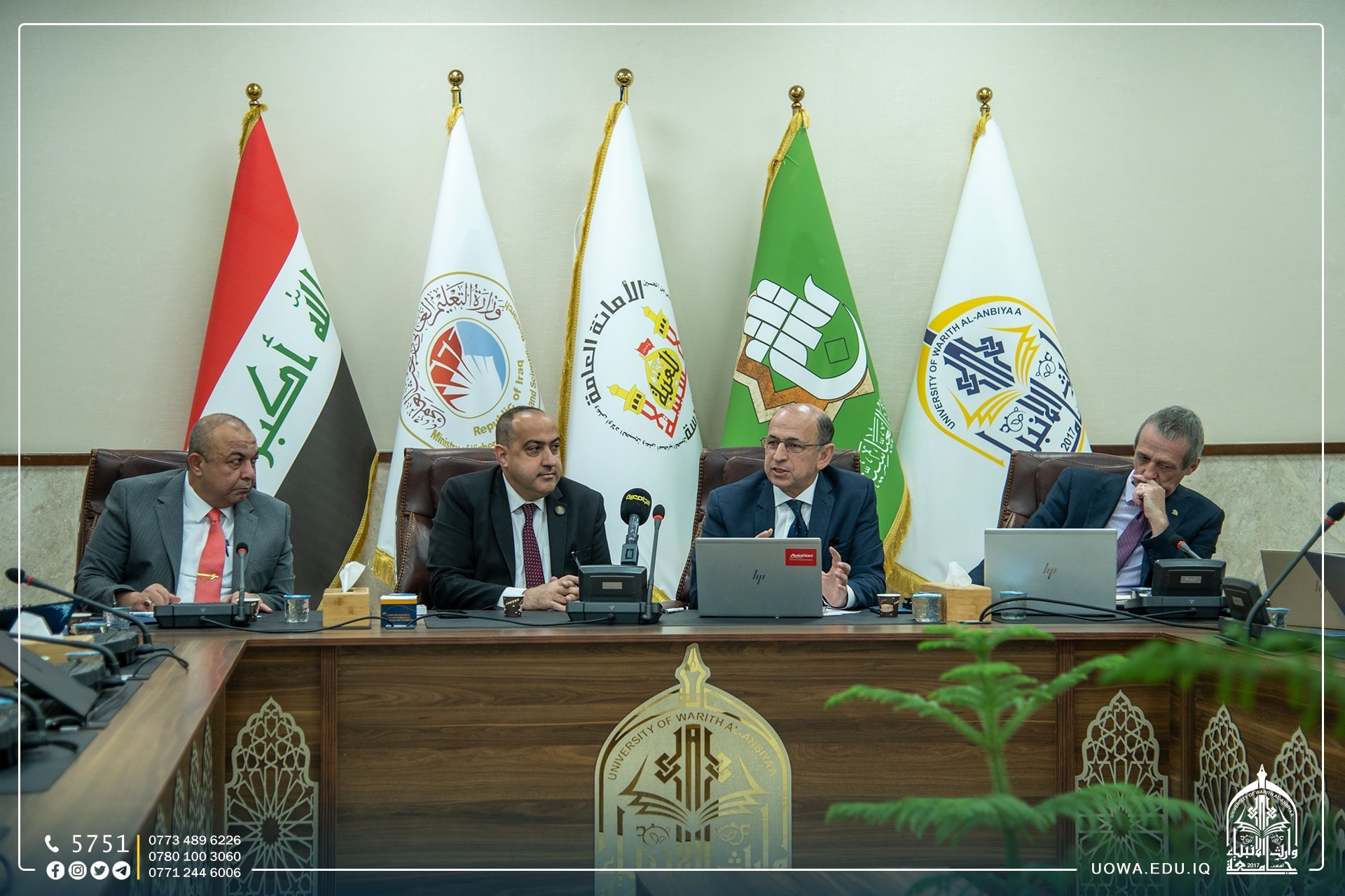 خلال زيارته الى جامعة وارث الانبياء(عليه السلام) ولقاءه مع السيد رئيس الجامعة الاستاذ الدكتور ابراهيم الحياوي، بين الاستاذ الدكتور شفيق المولى رئيس جامعة العين، إمكانية التعاون العلمي والاكاديمي بين الجامعتين، اضافة الى تأكيد الطرفين على تطبيق استراتيجية وزاره التعليم في وضع الخطط للدخول في التصنيفات العالمية وامكانية استقبال الطلبة الاجانب في جامعاتنا.