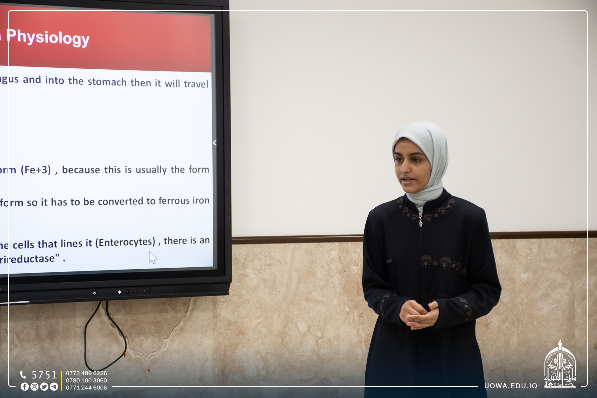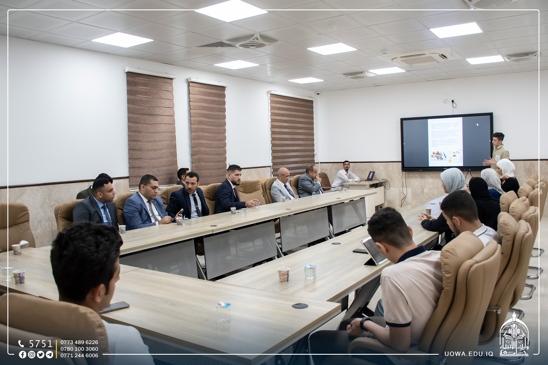 طلبة المرحلة الاولى في كلية الطب بجامعة وارث الانبياء (عليه السلام)، يقدمون سيمنرات علمية عن بعض الامراض بحضور رئاسة الجامعة وعمادة الكلية.