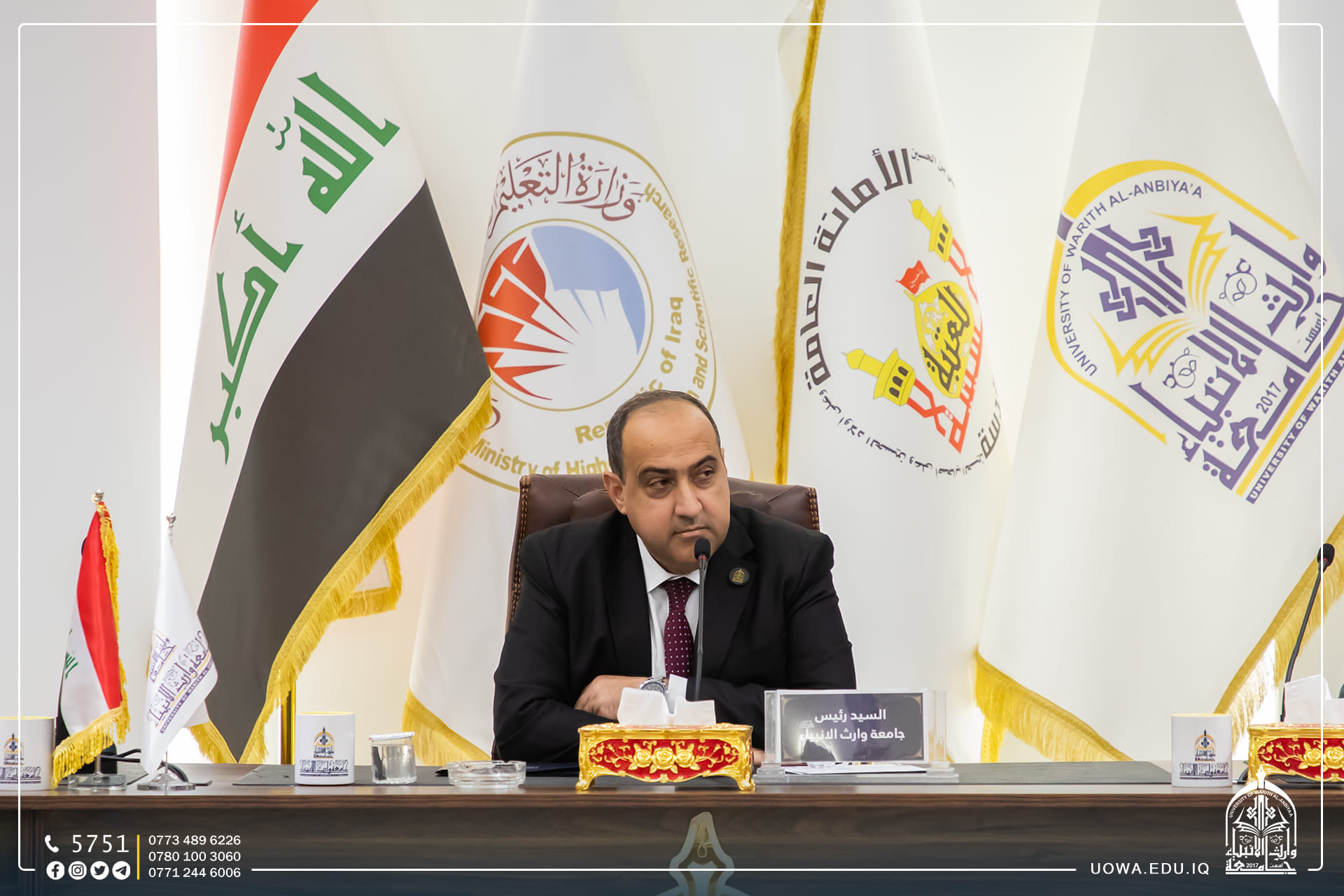 عقد مجلس جامعة وارث الأنبياء (عليهم السلام) جلسته الاعتيادية برئاسة الأستاذ الدكتور إبراهيم الحياوي، حيث شارك في الاجتماع السادة مساعدي رئيس الجامعة للشؤون الإدارية والعلمية، وعمداء الكليات.