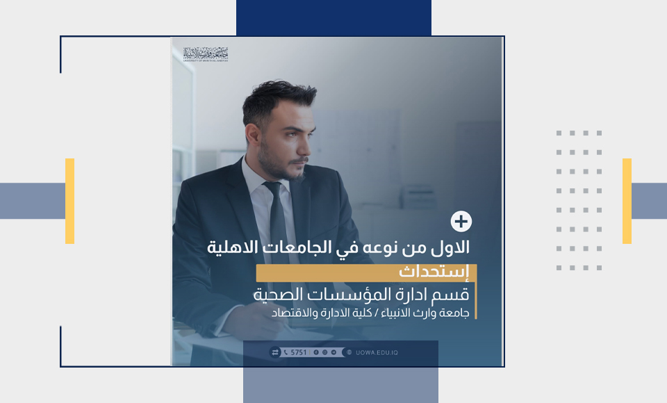 قسم إدارة المؤسسات الصحية في كلية الإدارة والاقتصاد – جامعة وارث الأنبياء (عليه السلام) يؤهّلك لتكون جزءاً من قيادة النظام الصحي الحديث في البلاد
