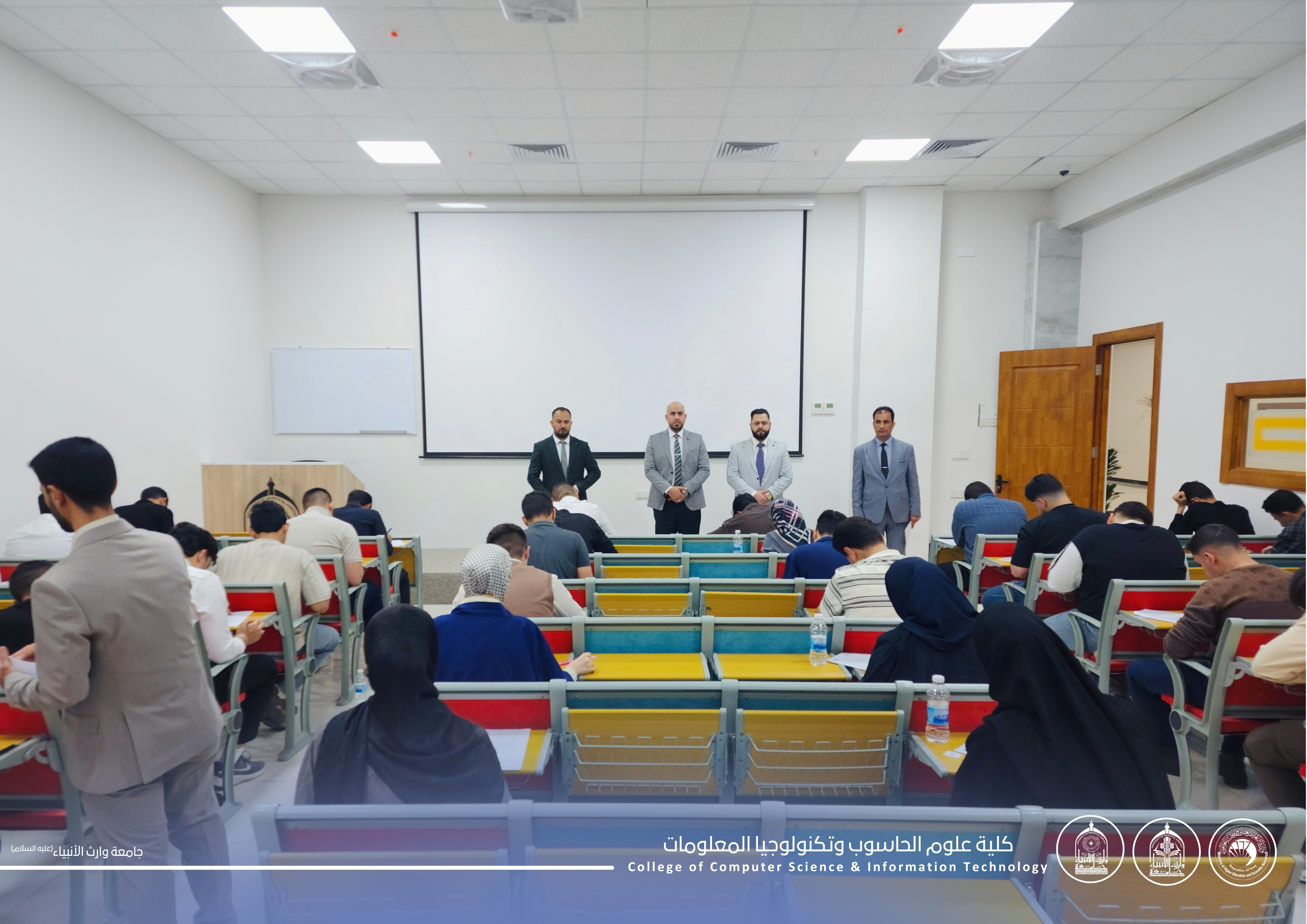 اطّلع مساعد رئيس الجامعة للشؤون العلمية الأستاذ الدكتور واقد الموسوي، يرافقه الأستاذ المساعد الدكتور حيدر محمد علي الغانمي عميد كلية علوم الحاسوب وتكنولوجيا المعلومات، على سير الامتحانات النهائية لطلبة المرحلة الأولى.
