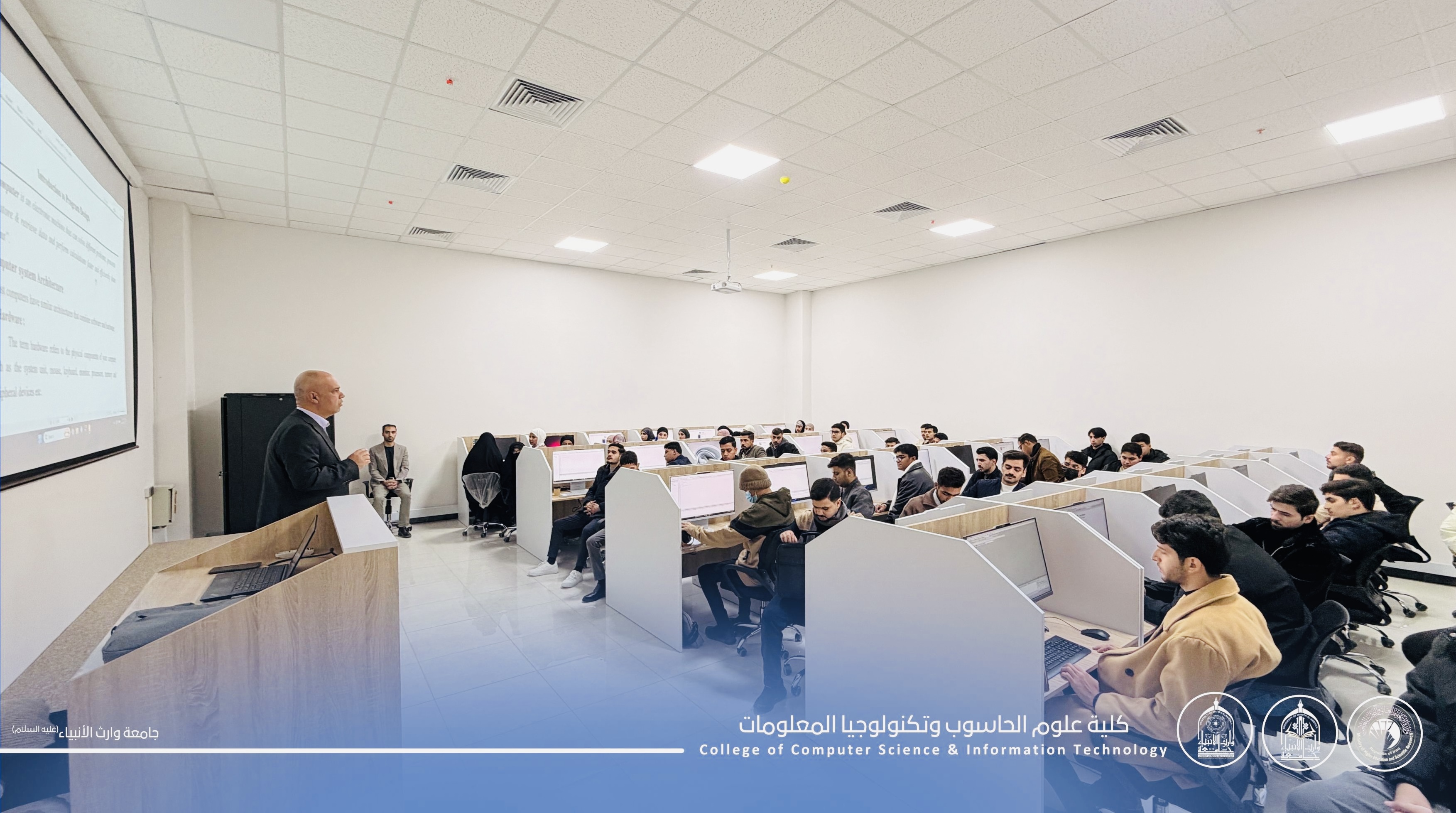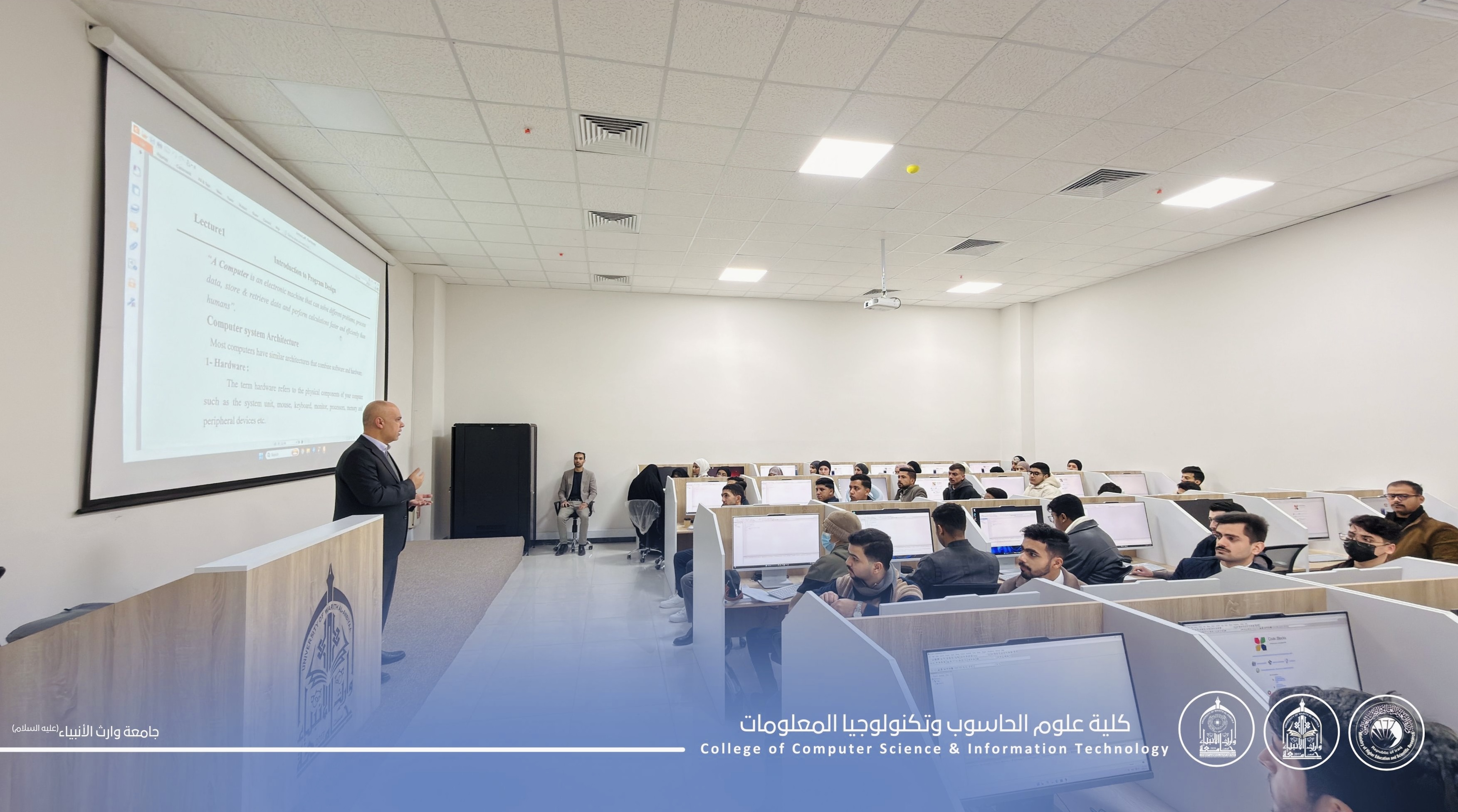 ضمن المحاضرات العملية لطلبة المرحلة الأولى في كلية علوم الحاسوب وتكنولوجيا المعلومات – جامعة وارث الأنبياء (عليه السلام)، يواصل الطلبة تطبيق مفاهيم