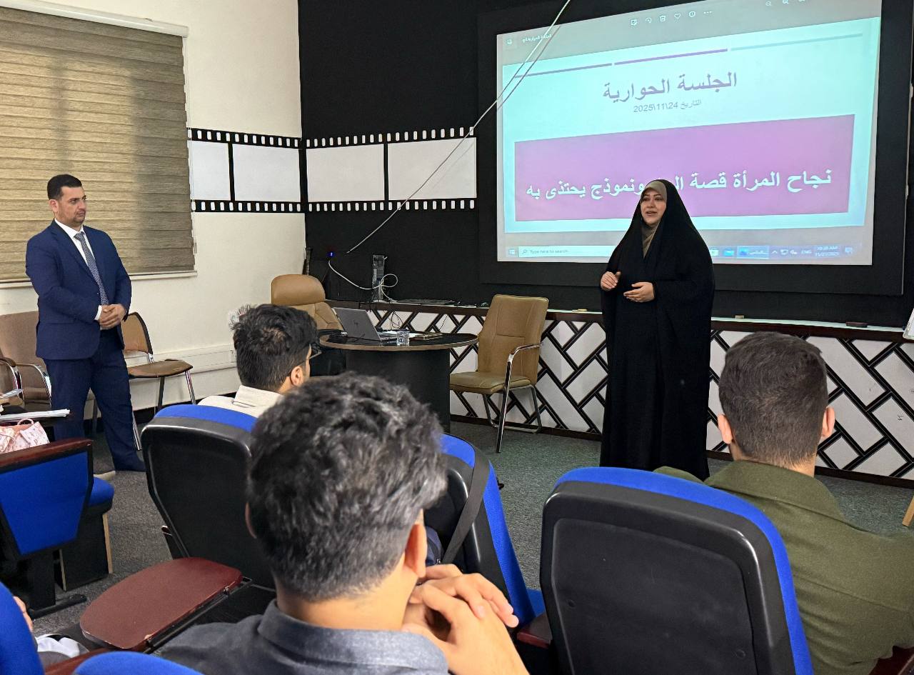 نظمت شعبة شؤون المرأة في جامعة وارث الانبياء بالتعاون مع كلية الإعلام الجلسة الحوارية حول نجاح المرأة :قصة الهام ونموذج يحتذى به لتسليط الضوء على قصص النجاح لدى النساء والفتيات لتكون نماذج ايجابية للمجتمع بتاريخ 24_ 11_2025
