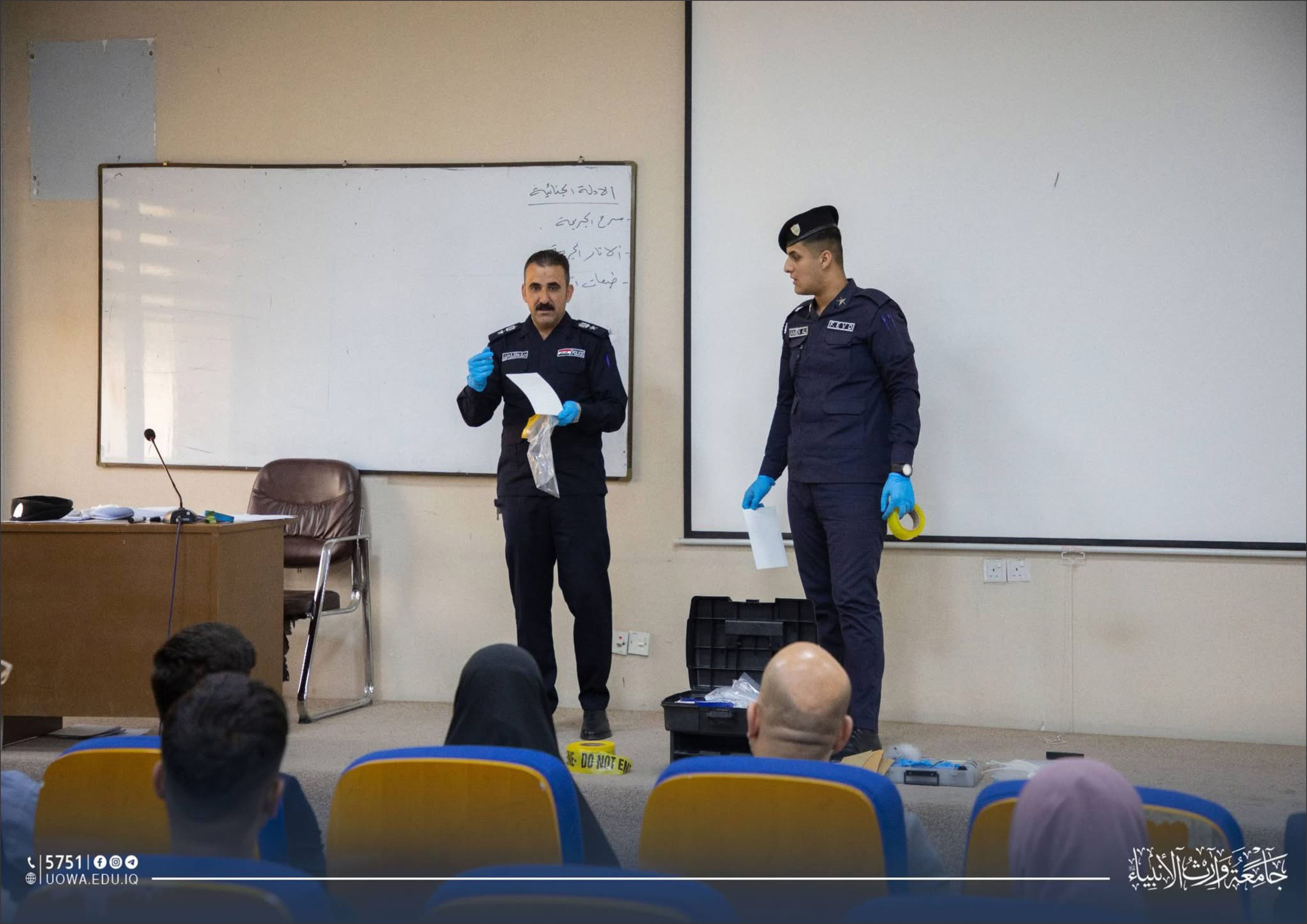 نظّمت كلية العلوم / قسم الأدلة الجنائية ورشة علمية متخصصة بعنوان "الحفاظ على مسرح الجريمة"، قدّمها المقدم الجنائي حيدر عبد الحمزة الفتلاوي، بحضور عدد من تدريسيي القسم وطلبته.