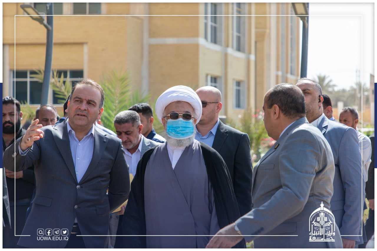 ( دام عزة ) وكان باستقباله رئيس هيأة التعليم الجامعي أ.د حيدر التميمي ورئيس الجامعة أ.د ابراهيم الحياوي.واجتمع الشيخ الكربلائي بملاك الجامعة لمناقشة آليات تطوير المسيرة التربوية في الجامعات التابعة للعتبة المقدسة، من النواحي كافة العلمية والاكاديمية والادارية سعيًا لتحقيق الارتقاء والتميز بالمهمة التعليمية، إذ أكد سماحته على ضرورة الاهتمام بالجانب العلمي وتوظيف كل الامكانات المتاحة لذلك، واستقطاب الكفاءات والخبرات العلمية من داخل العراق وخارجِه للتدريسِ في الجامعة، ودعم البحوث العلمية وتشجيع الباحثين بهدف انعكاس الصورة الايجابية على جودة المخرجات العلمية، مشيراً إلى أهمية جانب الارشاد النفسي والتربوي وأخذه بعين الاعتبار كونه لا يقل أهمية عن الجانب العلمي.