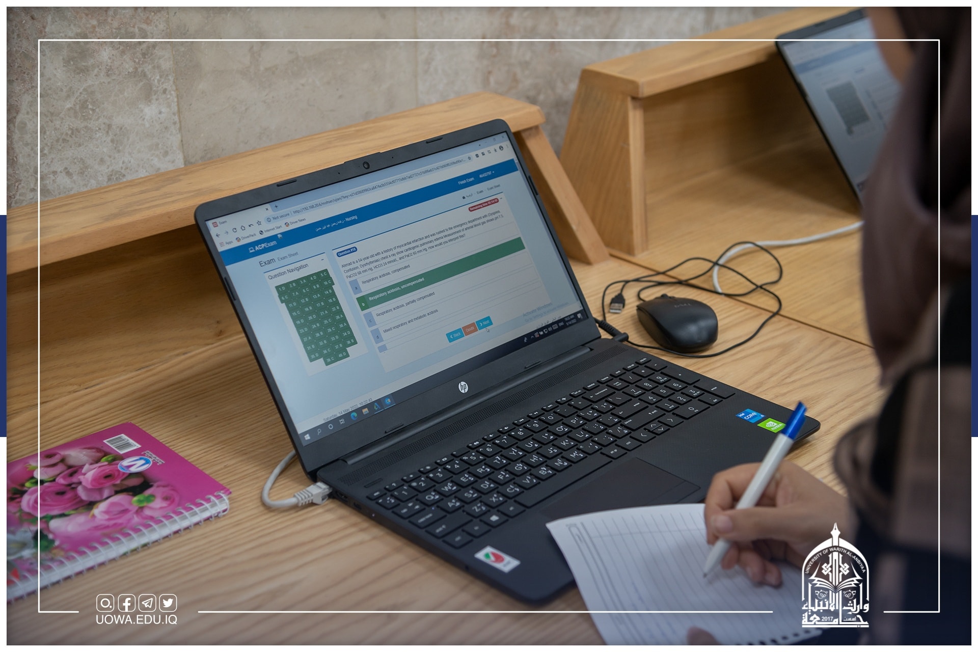 استضافت جامعة وارث الأنبياء (عليه السلام) أعضاء مجلس عمداء كليات التمريض العراقيةمن أجل تشكيل اللجان المركزية والفرعية المسؤولة عن اعداد وتهيئة الامتحان التقويمي لكلية التمريض.وكان في استقبالهم كل من السيد رئيس الجامعة والسادة المساعدين العلمي والإداري وعميد كلية التمريض. وقدم مساعد عميد كلية الطب للشؤون العلمية الاستاذ الدكتور صبيح المشهداني ورشة عمل حول الامتحان التقويمي وكيفية عمل سياق الاختبار الألكتروني، وطريقة الإجابة وحل المشكلات التي تواجه الطلبة أثناء أداء امتحاناتهم تحت إشراف مباشر من قبل الكوادر التدريسية والفنية في الكلية.