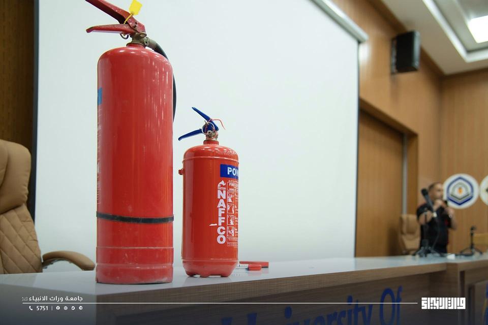 The University Affairs Department, in collaboration with the Campus Care Department at Warith Al-Anbiyaa University (peace be upon him), organised a training workshop on safety procedures and civil defense, aiming to raise awareness of preventive measures and emergency response within the university campus.