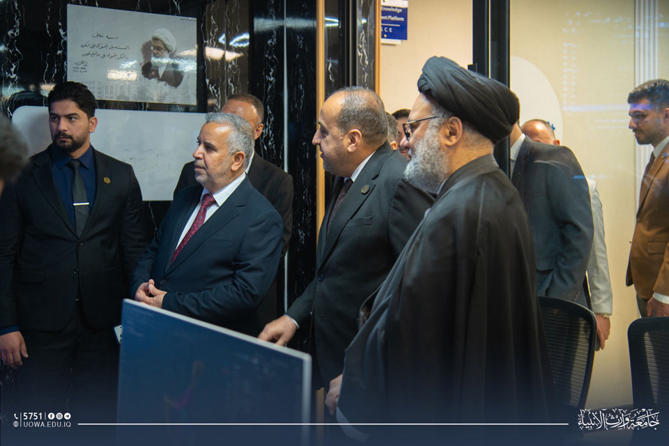 In a step aimed at expanding the horizons of academic cooperation, the Presidency of the University of Warith Al-Anbiyaa, represented by its President, Professor Dr Ibrahim Al-Hayyawi, received the Minister of Agriculture and Member of the Iraqi Parliament, Mr Abbas Al-Ulayawi, accompanied by adviser Dr Riyadh Abu Saeeda.