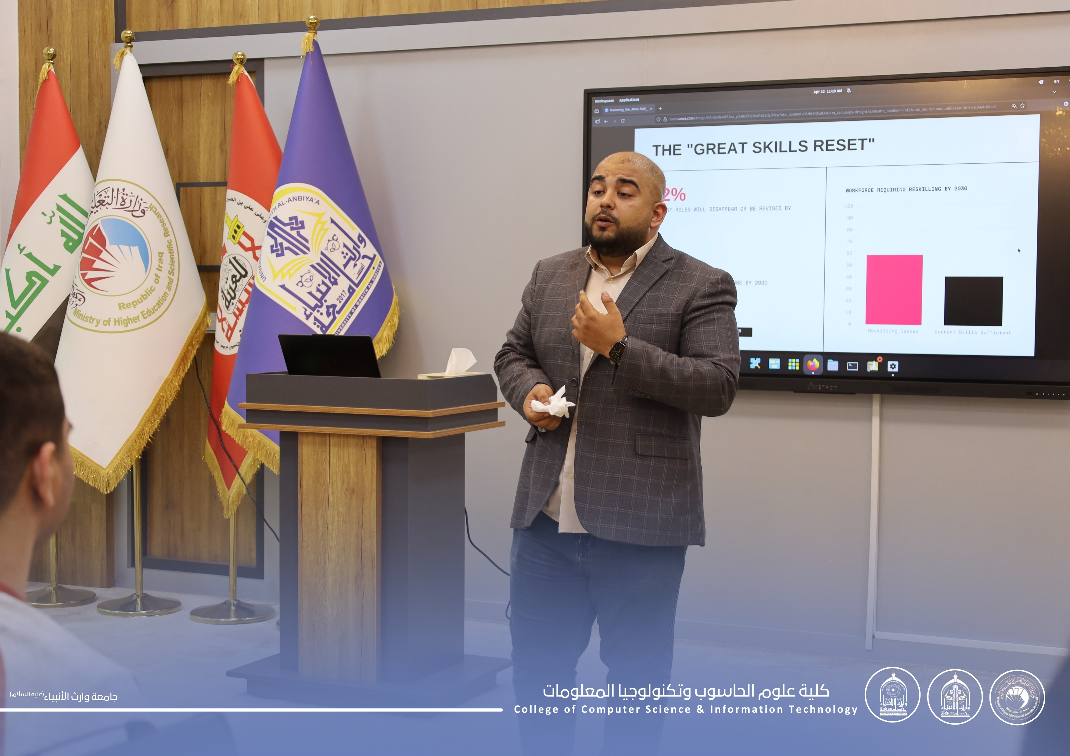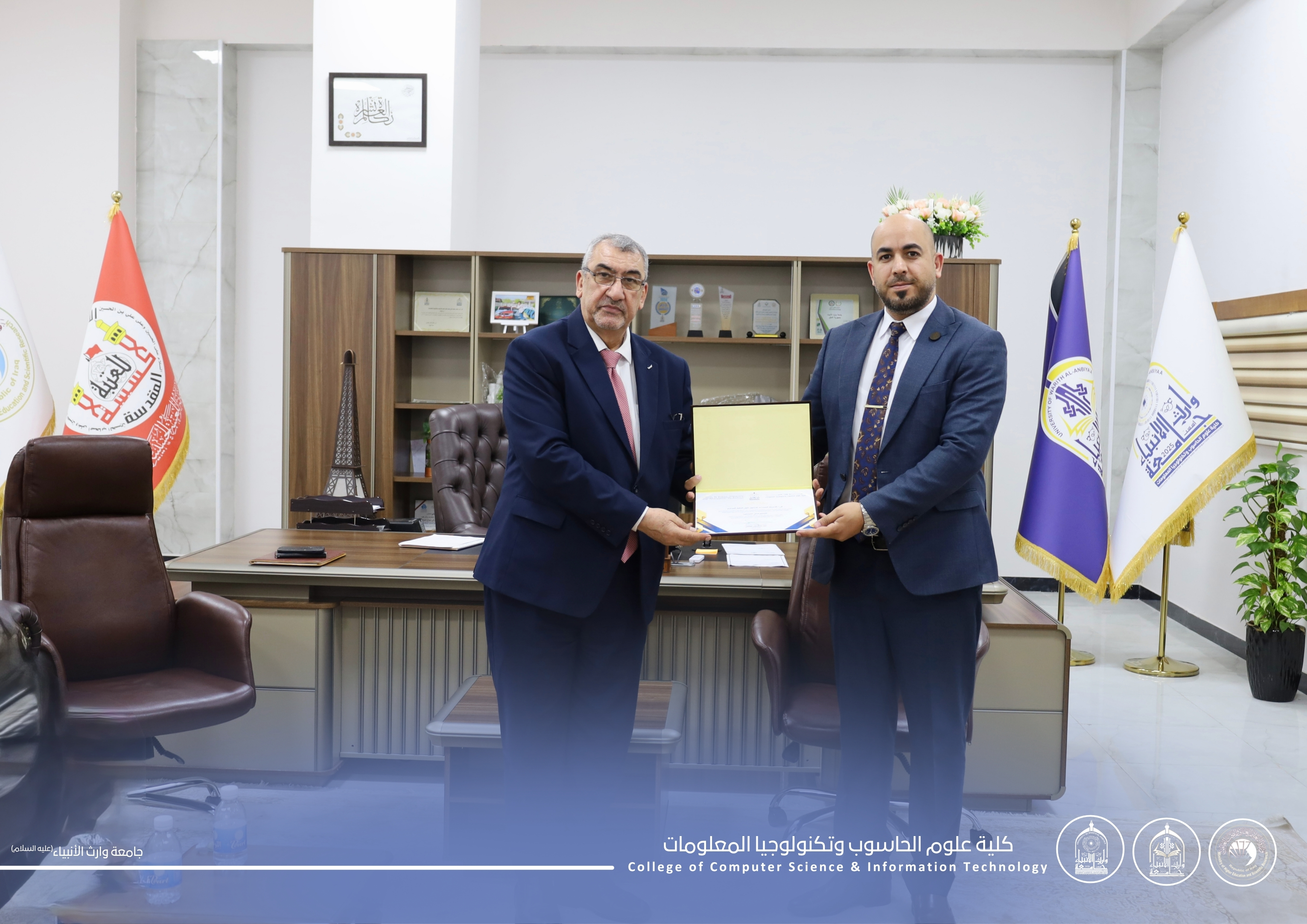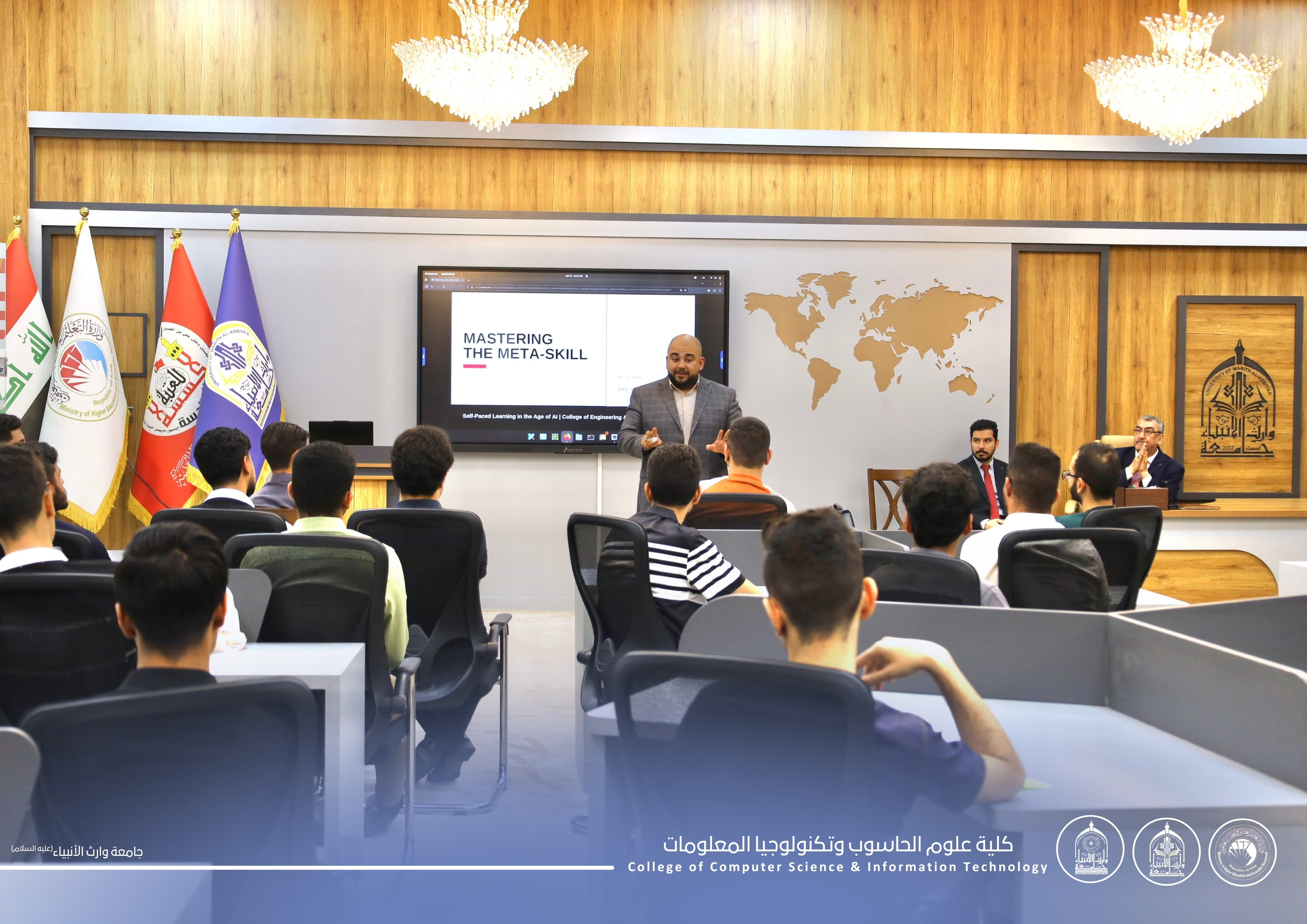 Under the patronage of the President of the University of Warith Al-Anbiyaa (peace be upon him), Professor Dr. Ibrahim Al-Hiyawi, and under the supervision of the Dean of the College of Computer Science and Information Technology, Assistant Professor Dr. Haider Al-Ghanimi, the College— in cooperation with the Arab Federation for Digital Empowerment in Iraq—organized a training workshop entitled: