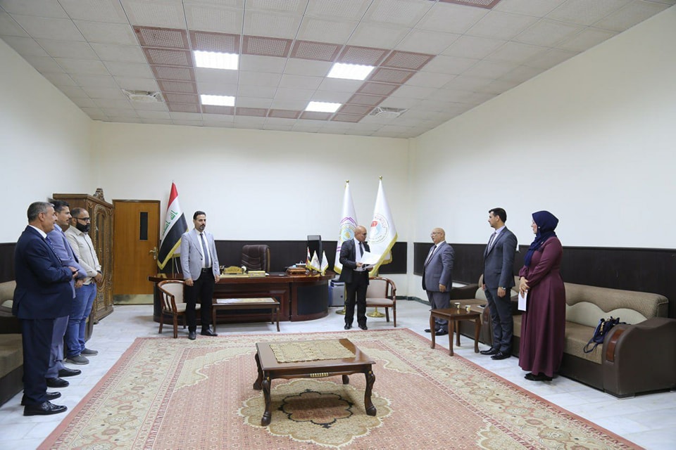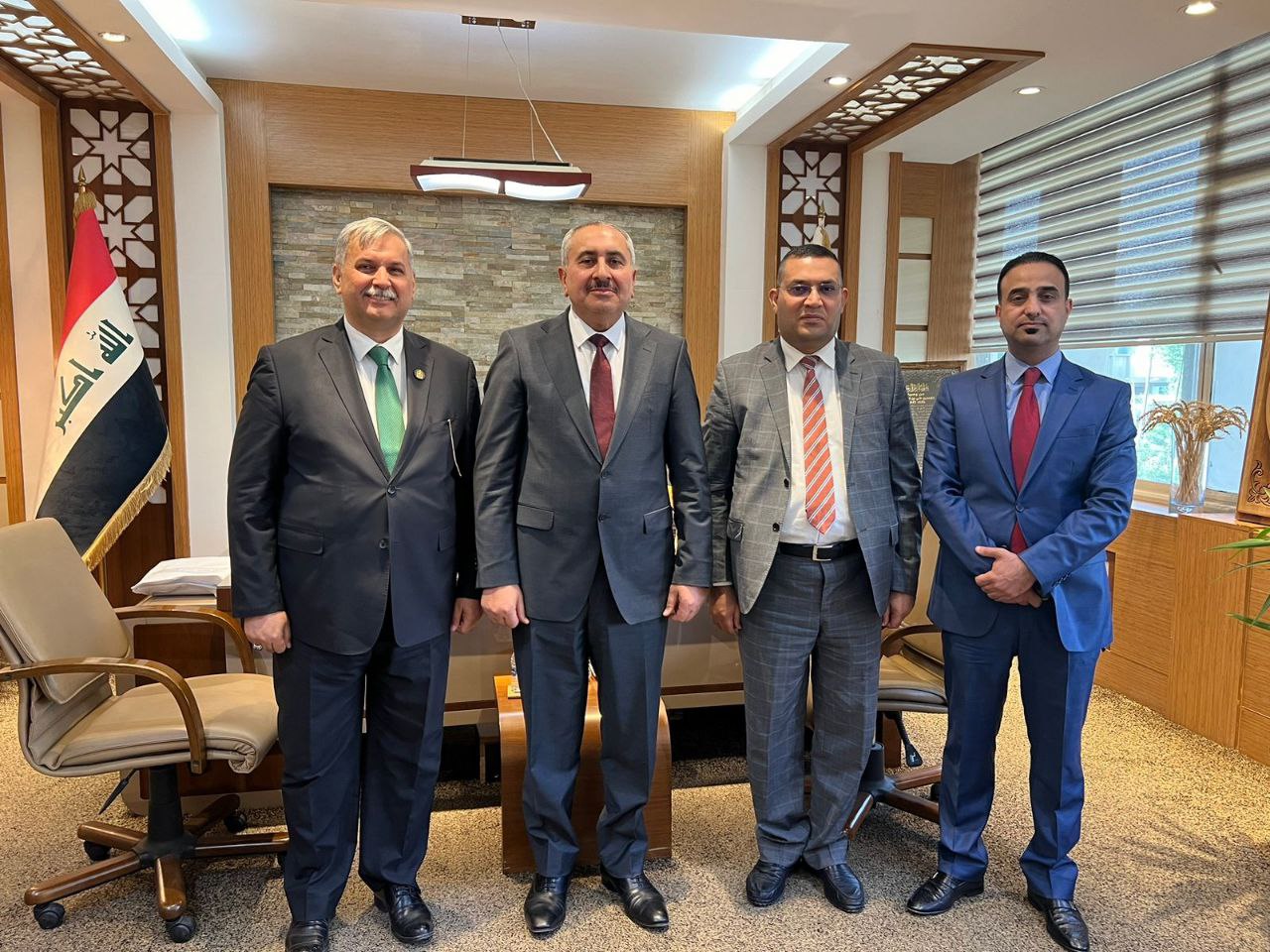 The delegation, consisting of Dr. Sabah Al-Jubouri, Dr. Hazem Al-Shibani, and Mr. Dhulfaqar Al-Jayyal, met with the President of the University of Baghdad, Professor Dr. Munir Al-Saadi, and the College of Political Science, meeting its dean. They expressed their readiness to provide academic and scientific support to the college.